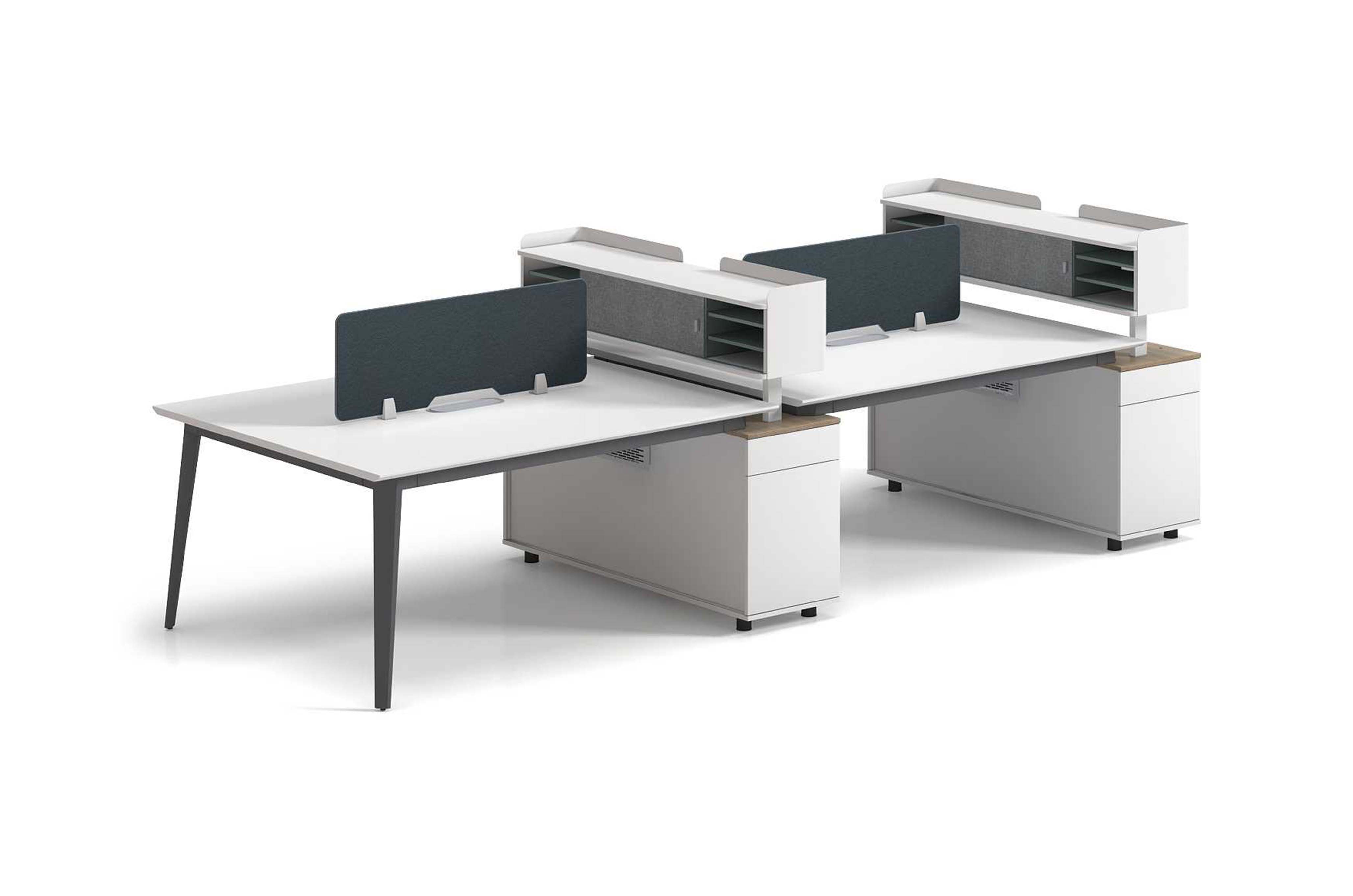 1.工藝:采用E0級刨花板貼三聚氰胺飾面 2.封邊:采用優(yōu)質(zhì)PVC封邊 3.屏風(fēng):ML403藍色皮紋無框桌屏; 4.五金:鋼制文件架擋板(壁厚1.5mm)+1.5mm壁厚鋼腳+1.6mm壁厚鋼制橫梁; 5.配件:優(yōu)質(zhì)鋁合金散熱蓋+優(yōu)質(zhì)鋁合金趟門配件+鋁合金拉手+優(yōu)質(zhì)ABS圓柱形調(diào)節(jié)腳; 6.走線:臺面配OP線蓋; 7.選配:可選配多款線槽;