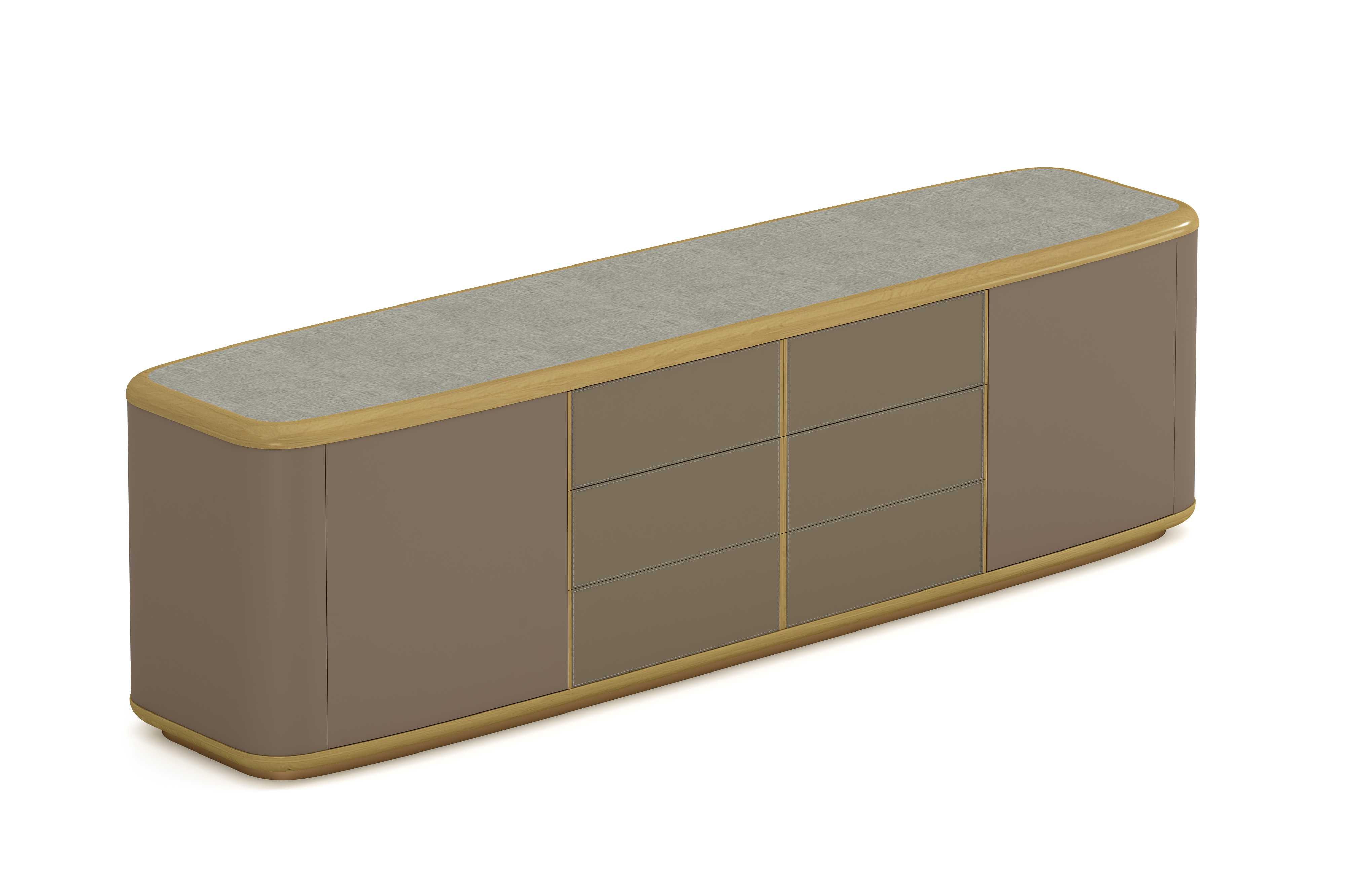 1.工藝:見光面采用E0級中密度纖維板+0.6mm染色木皮做水性漆/實色水性漆 2.封邊:見光面天然木皮封邊/實色水性漆+楓木實木封邊 3.細節:實木封邊;抽面捫皮; 4.配件:“BMB”緩沖門鉸+明裝式反彈器; 5.五金:底座采用玫瑰金不銹鋼框;