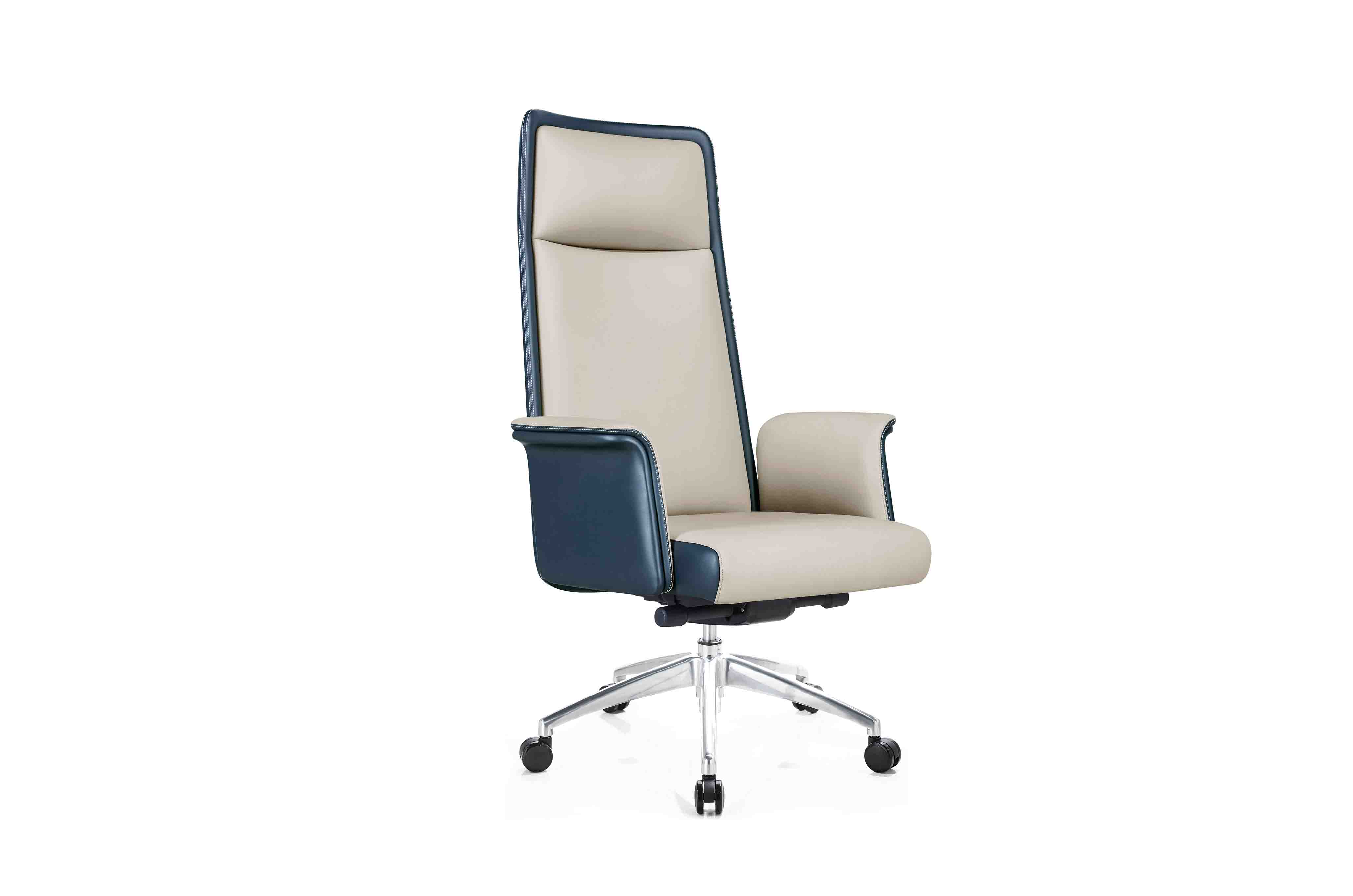 1.優質西皮/巴西進口優質黃牛皮飾面 2.9層木皮壓制而成的高密度夾板 3.40密度高彈力海綿 4.中泰豪華底盤 5.通過SGS認證三級電鍍氣壓棒 6.350#鋁合金高腳配?60PU靜音輪