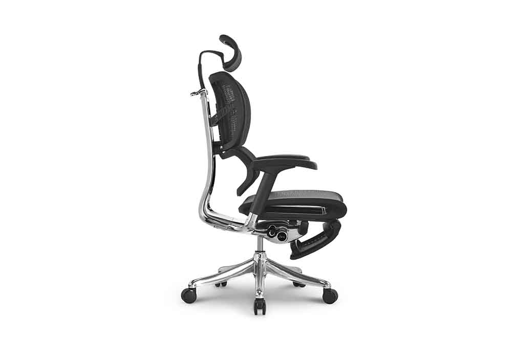 1.塑膠框架:黑色;有頭枕;面料:優質進口網布; 2.底盤:自主研發鋁合金線控拋光; 3.氣壓棒:電鍍,韓國KGS/三弘品牌,100mm行程; 4.椅腳:EG鋁合金拋光; 5.滑輪:65mmPU; 6.坐墊采用獨家首創全網環保坐墊,配固定式舒適墊 ; 7.PU02扶手;三個把手,角度鎖定;