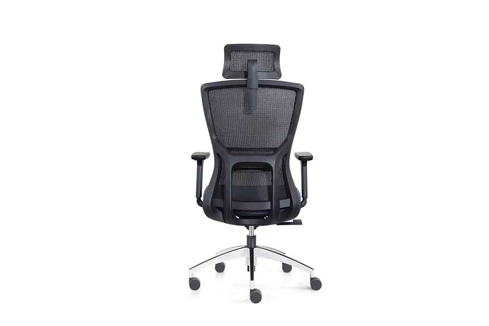 1.尼龍頭枕,尼龍玻纖背框+調節腰靠 2.升降扶手,50密度定型海綿 3.3檔鎖定同步傾仰底盤,優質氣壓棒 4.330mm鋁合金五星腳,60mm尼龍腳輪