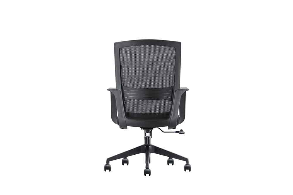 1.黑色PP加玻纖背架 2.黑色PP固定扶手 3.座包采用40#高彈力海綿 4.配中班蝴蝶底盤,帶原位鎖定功能 5.固定扶手連接椅背和椅座(不車線),自動逍遙貼背功能 6.100沉口7CM黑色氣桿 7.320mm黑色尼龍五星腳 8.?50mm黑色耐磨尼龍輪