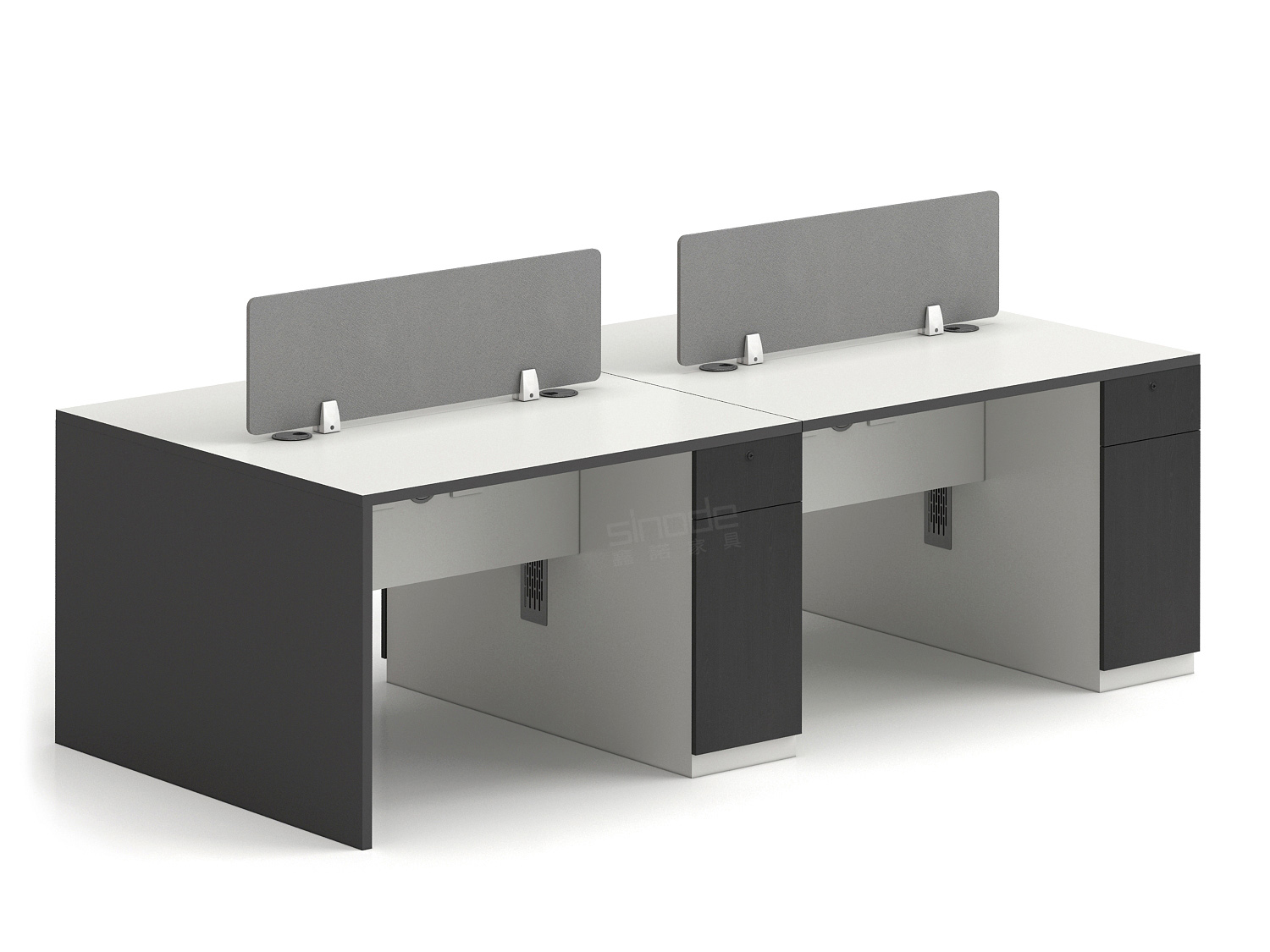 1.工藝:采用E0級刨花板貼三聚氰胺飾面; 2.封邊:采用優(yōu)質PVC封邊; 3.側板:SN17 寶石灰三胺板側腳; 4.配件:優(yōu)質門鉸+優(yōu)質三節(jié)導軌+?80圓形過線蓋+優(yōu)質鎖+優(yōu)質鋁合金散熱蓋+卡米拉桌屏;