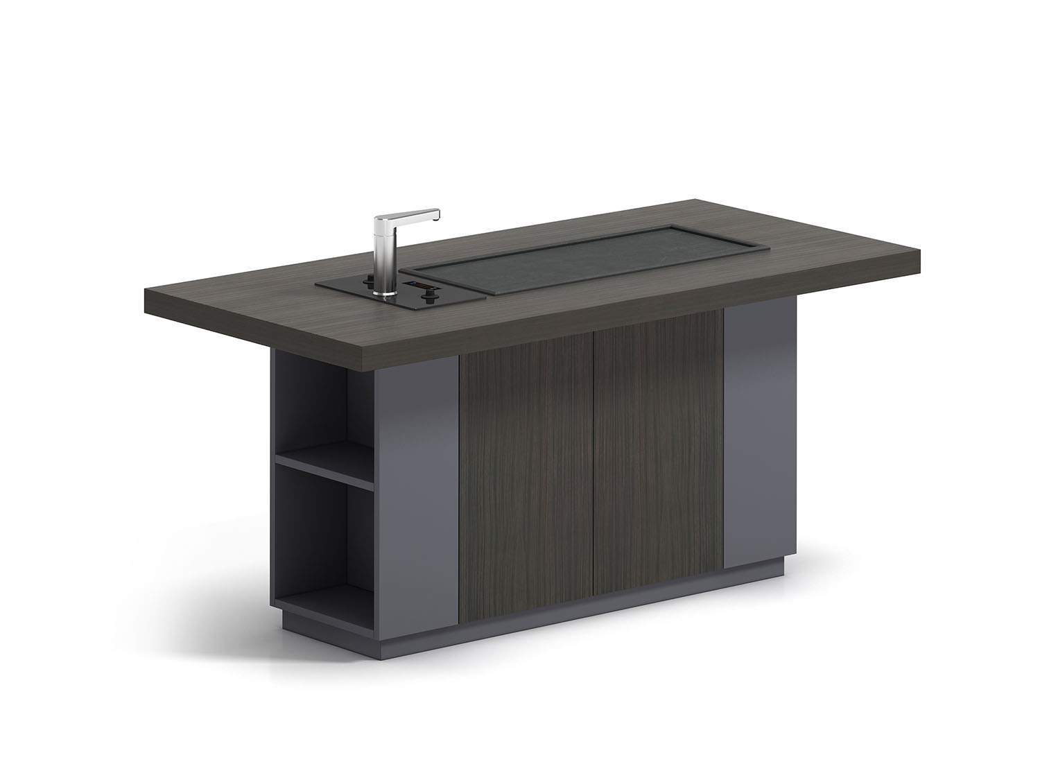 1.工藝:見光面采用E0級中密度纖維板+0.6mm天然木皮做水性漆,不見光面采用E0級刨花板貼三聚氰胺飾面; 2.封邊:見光面天然木皮封邊,非見光面采用優(yōu)質(zhì)PVC封邊; 3.配件:“BMB”緩沖門鉸+“BMB”緩沖三節(jié)導(dǎo)軌+內(nèi)嵌式高端烏金石茶臺+高端智能茶具(304#食用級不銹鋼);