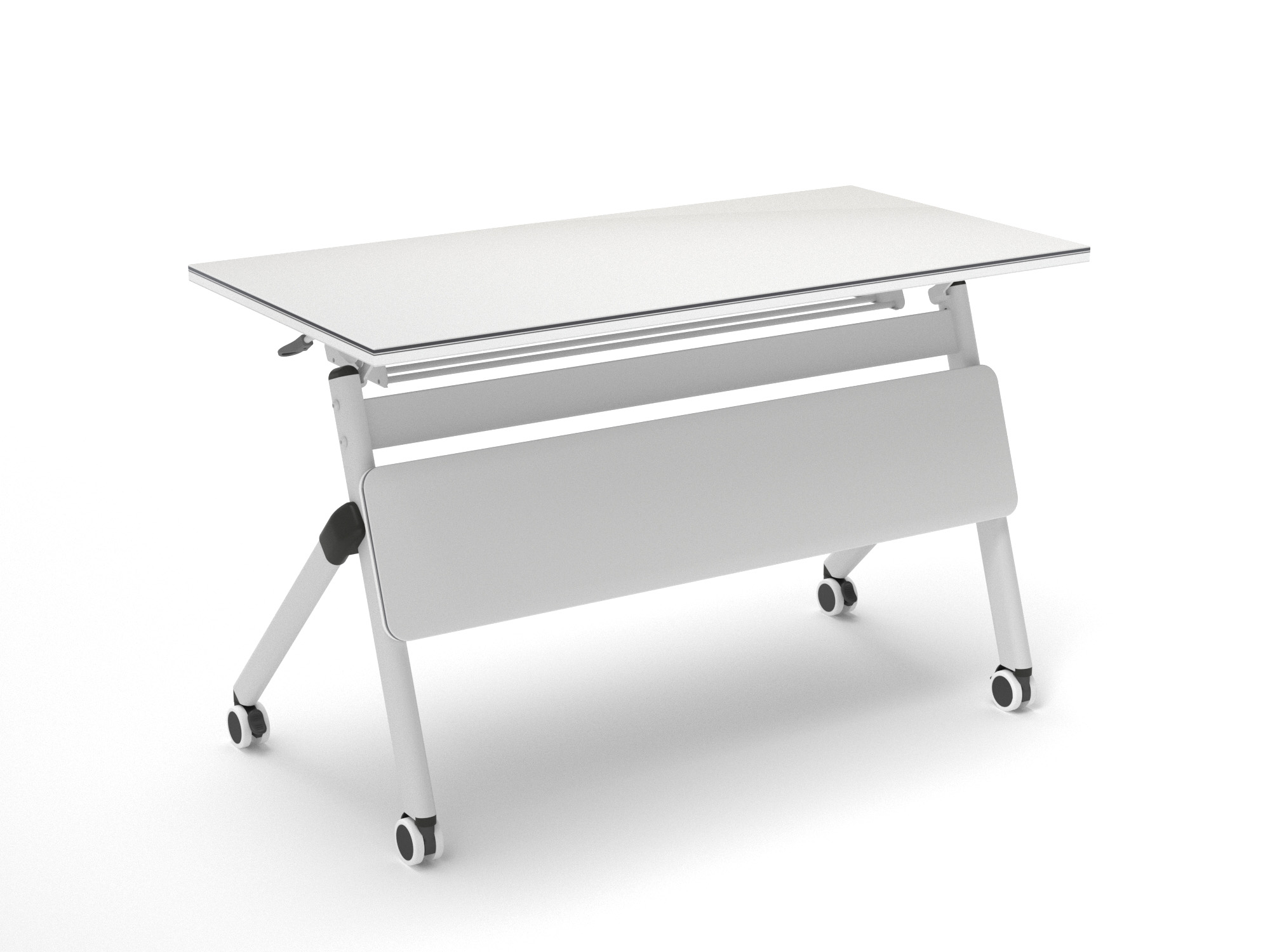 1.基材:采用E0級刨花板; 2.面材:雙面高端耐磨、耐劃痕、耐酸堿、耐燙、耐污染三胺飾面; 3.封邊:采用優質PVC封邊帶,先進封邊機封邊工藝; 4.五金:1.2mm壁厚人字形鋼制支撐腳+3.0mm壁厚方形鋼制橫梁; 5.功能說明:支撐架帶折疊功能,穩固,方便,表面酸洗磷化除油除銹后高溫靜電噴涂; 6.配件:優質PU剎車輪