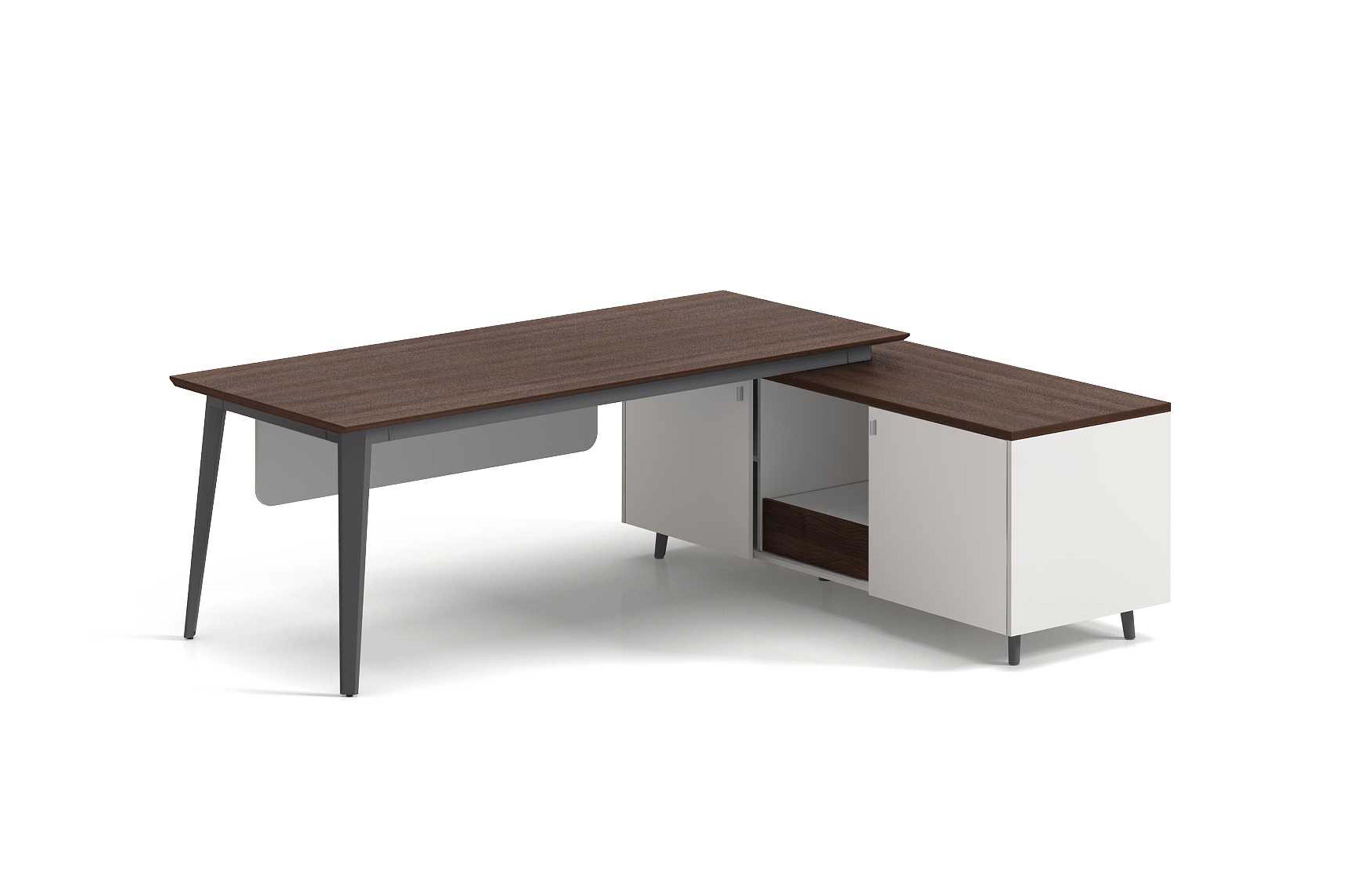 1.工藝:采用E0級刨花板貼三聚氰胺飾面 2.封邊:采用優質PVC封邊 3.五金:1.5mm壁厚鋼腳+1.6mm壁厚鋼制橫梁+鋼制副柜支撐腳; 4.配件:“BMB”牌導軌+高端趟門配件+鍍珍珠鉻色鉛筆拉手+鋅合金擋板夾+優質鋁合金散熱蓋; 5.走線:臺面配OP線蓋,副柜內部走線,內配?80圓形過線盒; 6.班臺分左右;