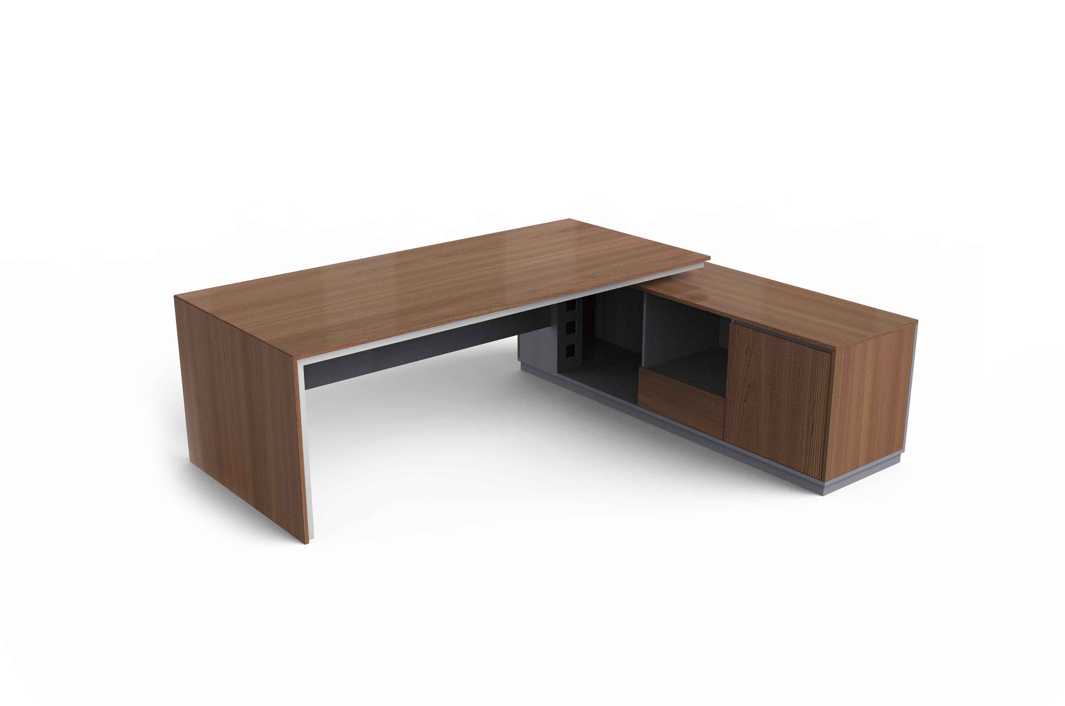 1.工藝:木紋色采用E0級中密度纖維板+0.6mm天然木皮做水性漆/實色水性漆,實色采用E0級刨花板貼三聚氰胺飾面; 2.封邊:木紋色天然木皮封邊/實色水性漆,實色采用優質PVC封邊; 3.細節:臺面與臺腳做海棠角工藝,上下各留3MM工藝垂直倒角; 4.配件:“BMB”牌阻尼門鉸+“BMB”牌阻尼導軌+鋁合金散熱蓋; 5.走線:副柜內部走線,配OP線蓋,內配?80圓形過線盒+86線盒孔;
